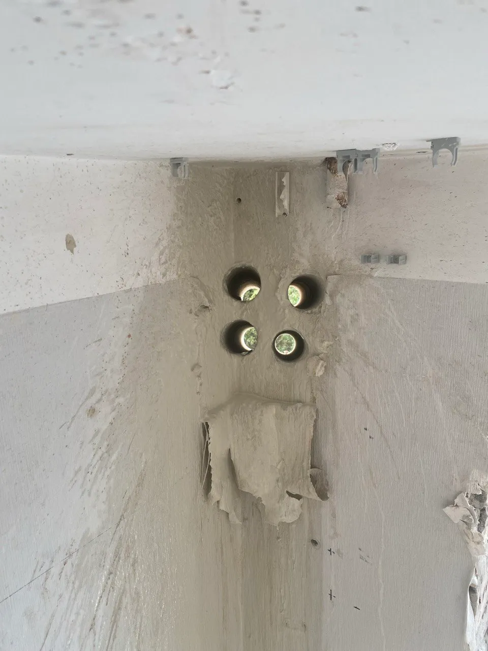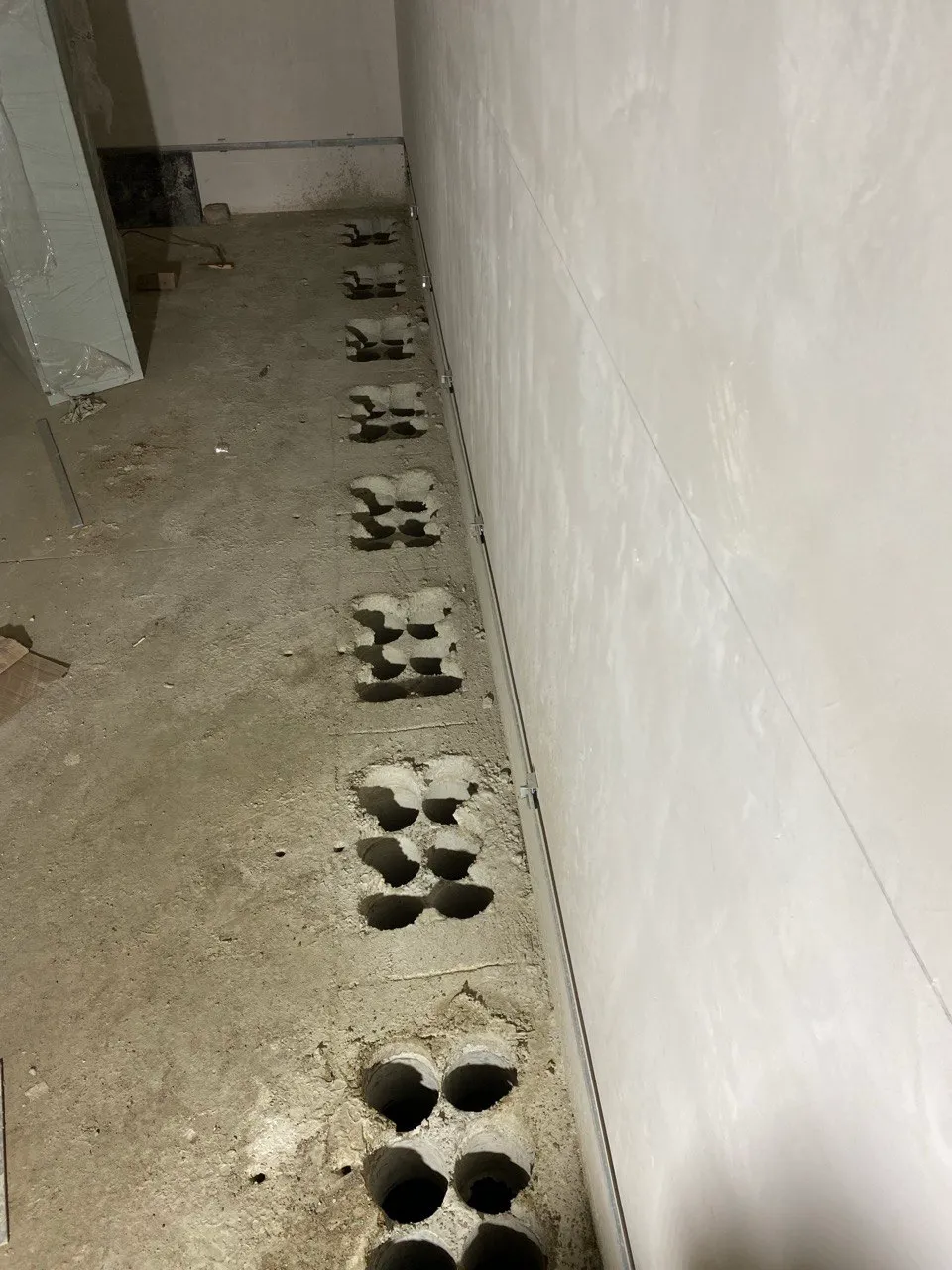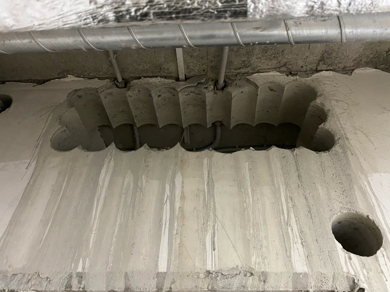 Здесь вы увидите процесс и результат алмазного бурения отверстий под вентиляцию, сантехнику, электрику и другие коммуникации, а также примеры аккуратного штробления стен. Обратите внимание на идеальную геометрию отверстий, точность среза даже в армированном бетоне, отсутствие сколов и трещин, а также на чистоту, которую мы оставляем после себя на объекте.